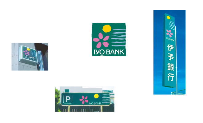 株式会社伊予銀行 1990 緑の大地、太陽、花、海をモチーフに、伊予の美しい自然を構成したデザインシステム。 豊かで快適な地域環境を創造する感性を表現しました。 様々な形状や大きさに合わせてモチーフの位置を自由に動かすことができ、 フレキシブルに展開することができます。